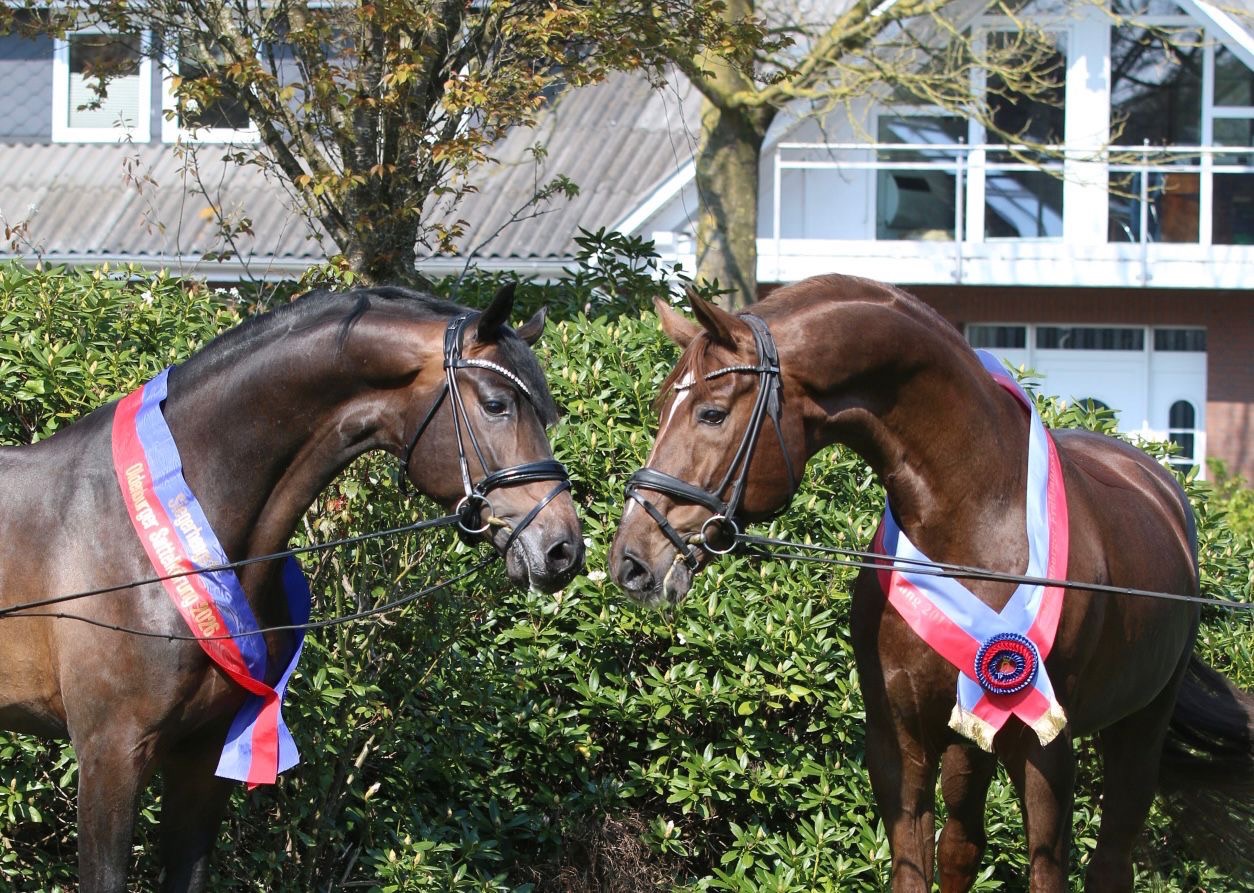Die Vollschwestern wurden mit der Oldenburger Hauptprämienanwartschaft ausgezeichnet, wobei Edwina Gold OLD 2024 Reservesiegerstute der Elite-Stutenschau in Rastede wurde.