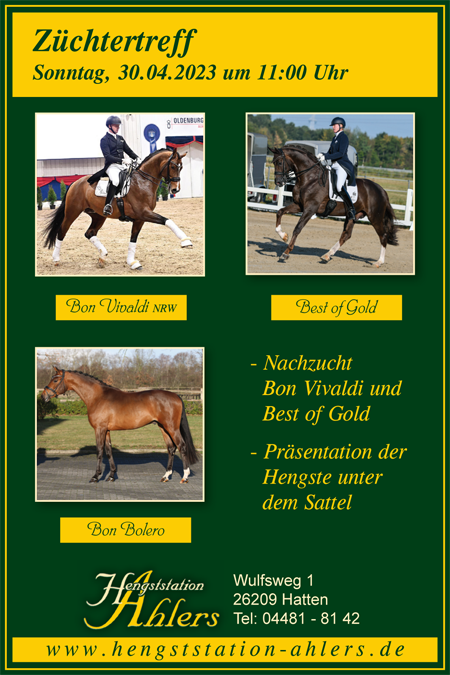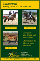 Auf dem Züchtertreff erwarten Sie Nachzucht von Bon Vivaldi und Best of Gold, sowie eine Präsentation der Hengste unter dem Sattel.