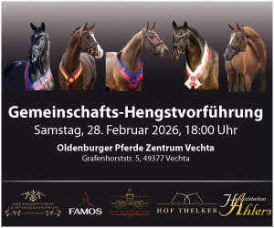 On February 28, 2026, we will present our stallions from 6 p.m. at the Oldenburg Horse Center in Vechta together with the stallion stations DLZ Lodbergen, Gestüt Famos, Gut Schönweide, Hof Thelker and Hengststation Ahlers. We cordially invite all interested breeders to attend.